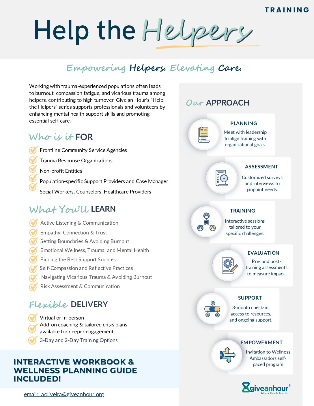 Personalized mental health services with Give an Hour alleviate the burnout crisis in your organization and help improve employee wellbeing.